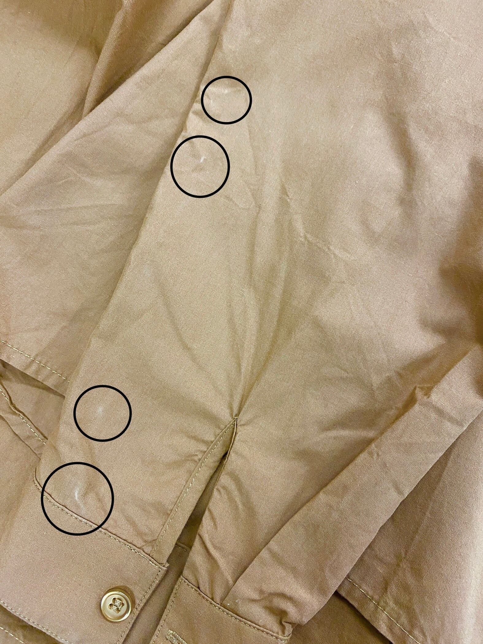 右手袖に小さな白い跡がありますが、気にならない程度かと思います。
