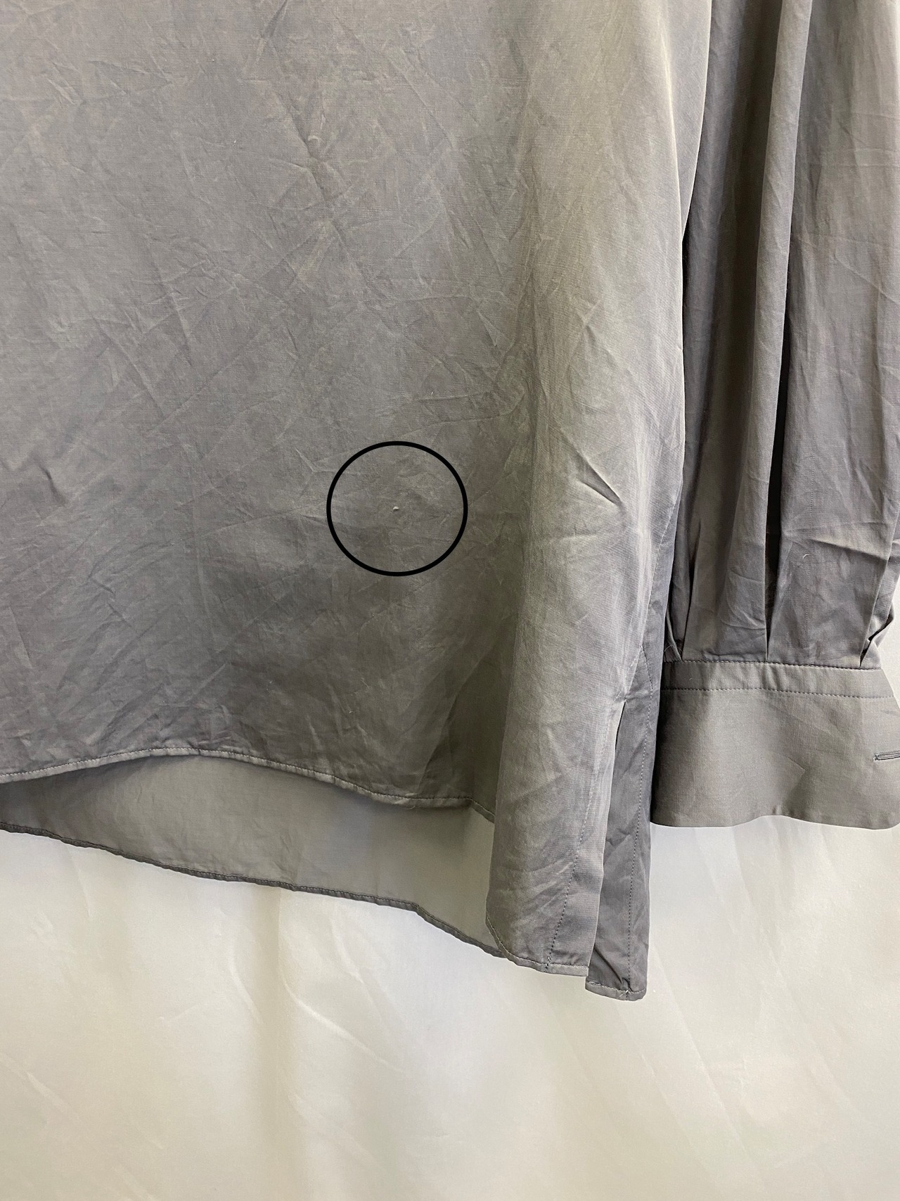 状態:使用感有り。前身頃向かって右下付近に1mm程度の引っかき傷あり。