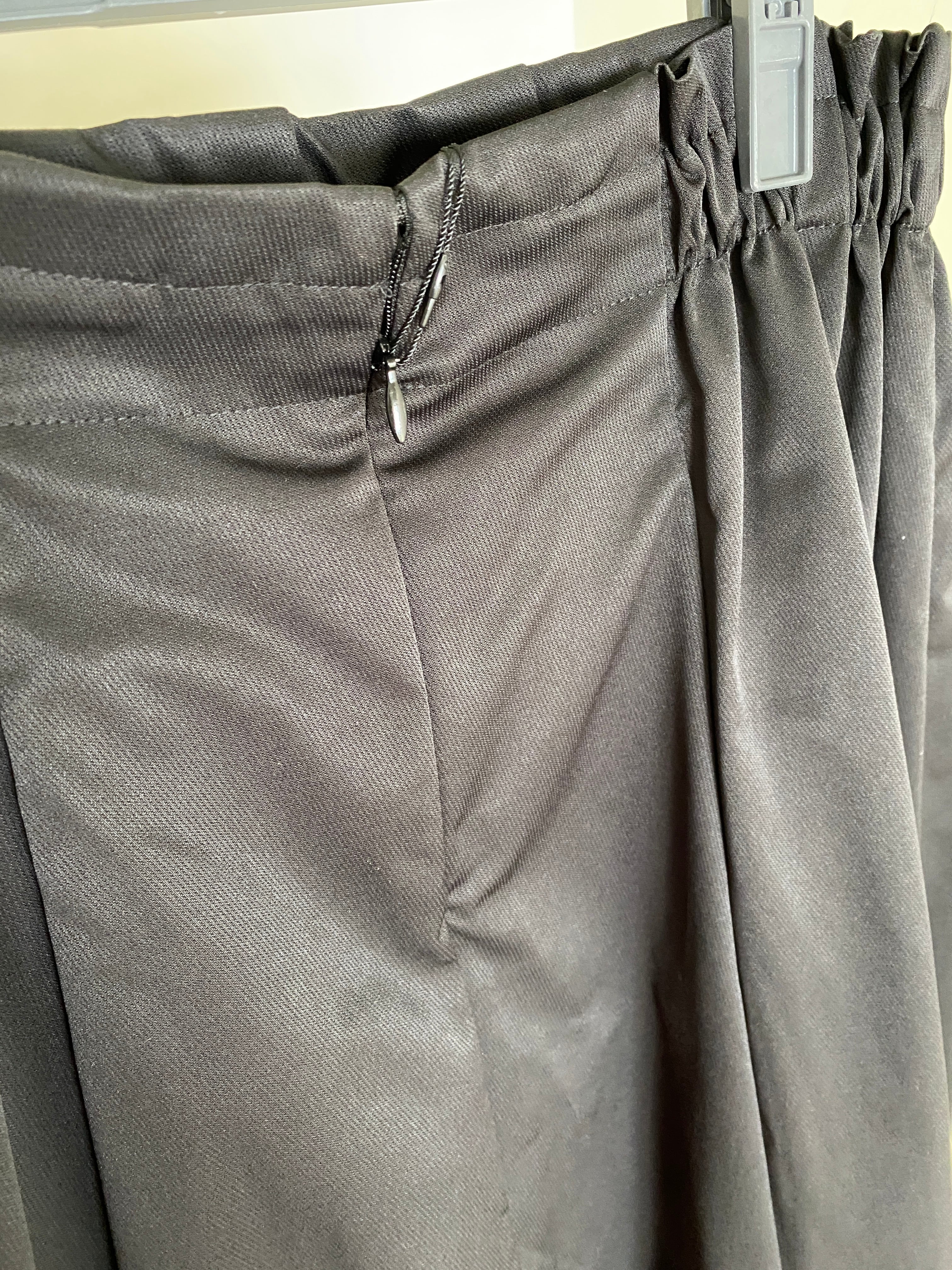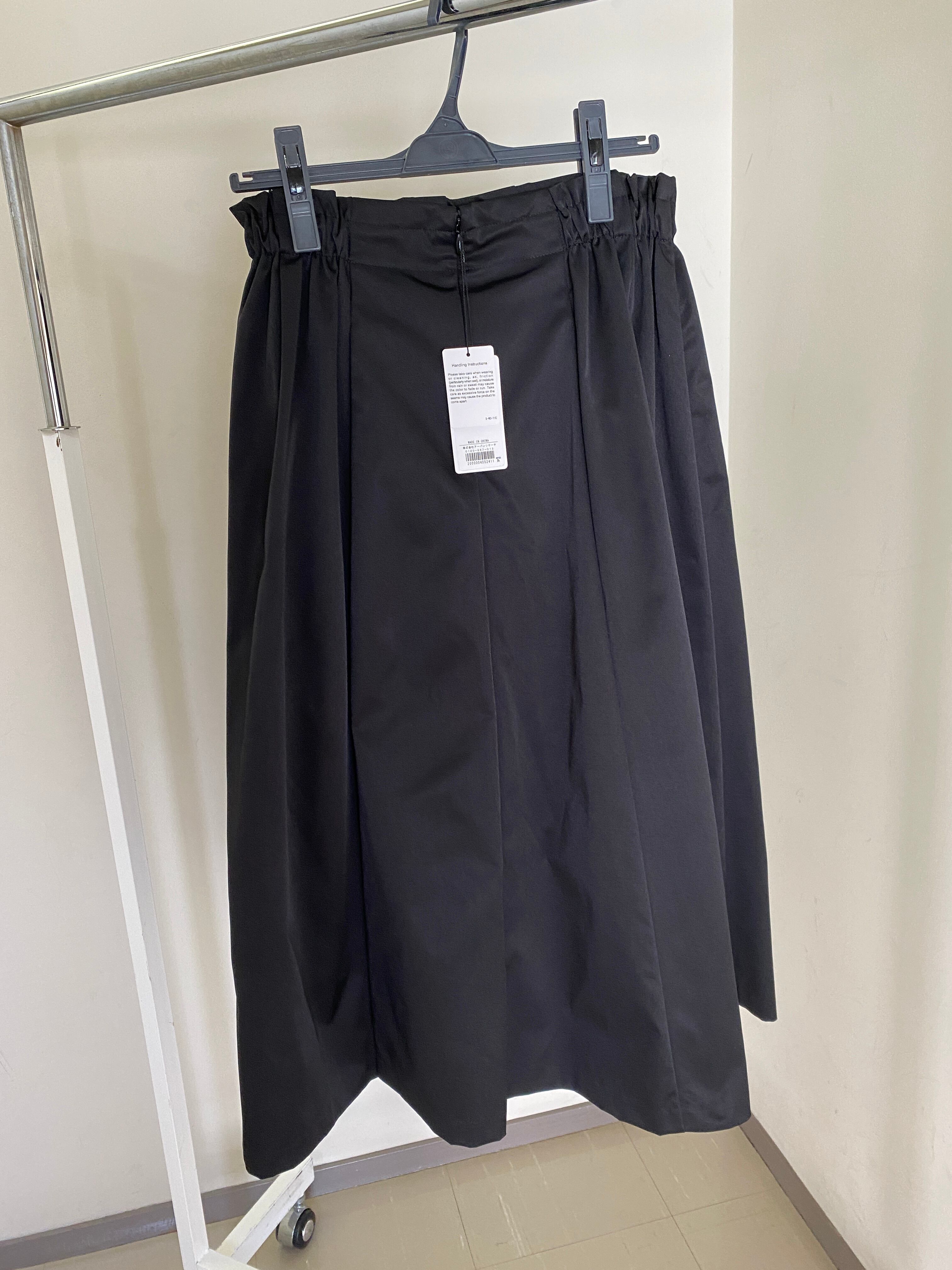 大きめのタックでボリュームのあるデザインなのでトップスはコンパクトにまとめてみてはどうでしょうか?